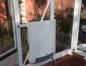 Integrierte Dachrinnen mit 2 Ablaufrohren. Inklusive 1 Schiebetüre und Dachfenstern.
