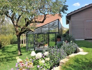Hier wurde aus einem Plantina Gewächshaus eine Garage für einen Oldtimer. Durch die transparente Verglasung kann der schöne Oldie auch bei Regen bestaunt werden.