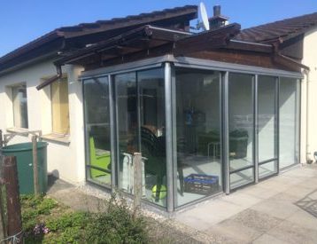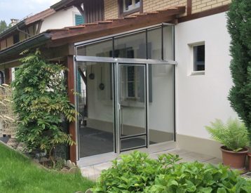 Schützen Sie sich vor Wind und Regen, mit einer Stehwandverglasung können Sie länger draussen sitzen.